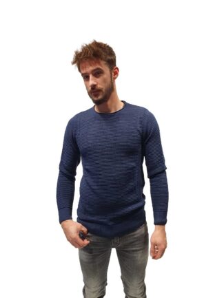 Μπλούζα Πλεκτή με Ανάγλυφη Ρίγα Μπλε