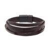 Κομψό ανδρικό βραχιόλι από καφέ δέρμα με αυλακώσεις, gunmetal και κλείσιμο με μαγνήτες. Χωρίς νικέλιο (υποαλλεργικό) και λουστραρισμένο, προστατεύοντας το κόσμημα από την οξείδωση