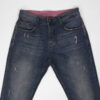 Παντελόνι jean με ξεθώριασμα και λίγες φθορές. Διαθέτει σχέδιο στην πατιλέτα και κλείσιμο με κουμπιά.