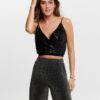 Μπλούζα Cropped ONLY Ασημί, Κρουαζέ, με Ραντάκι Ρυθμιζόμενο Παγιέτα allover.