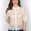 Πουκάμισο Ημιδιάφανο σε Λευκό με Κεντημένα Λουλούδια allover και 3/4 Μανίκι με Λάστιχο.