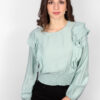 Μπλούζα με μακρύ μανίκι και βολάν. Διαθέτει λάστιχο στα μανίκια και στο τελείωμα της μπλούζας.
