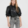 Μποτάκι ONLY Μαύρο Δερμάτινο Αστραγάλου με Τακούνι, Ασημένια Λεπτομέρεια στη Μύτη και κλείσιμο με φερμουάρ.