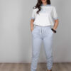 Φούτερ Crop Top με Κουκούλα Λευκό με Μωβ λεπτομέρειες