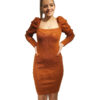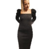 Φόρεμα Πλεκτό Mini Εκρού, σε Ίσια Γραμμή, με Balloon Μακρύ Μανίκι,